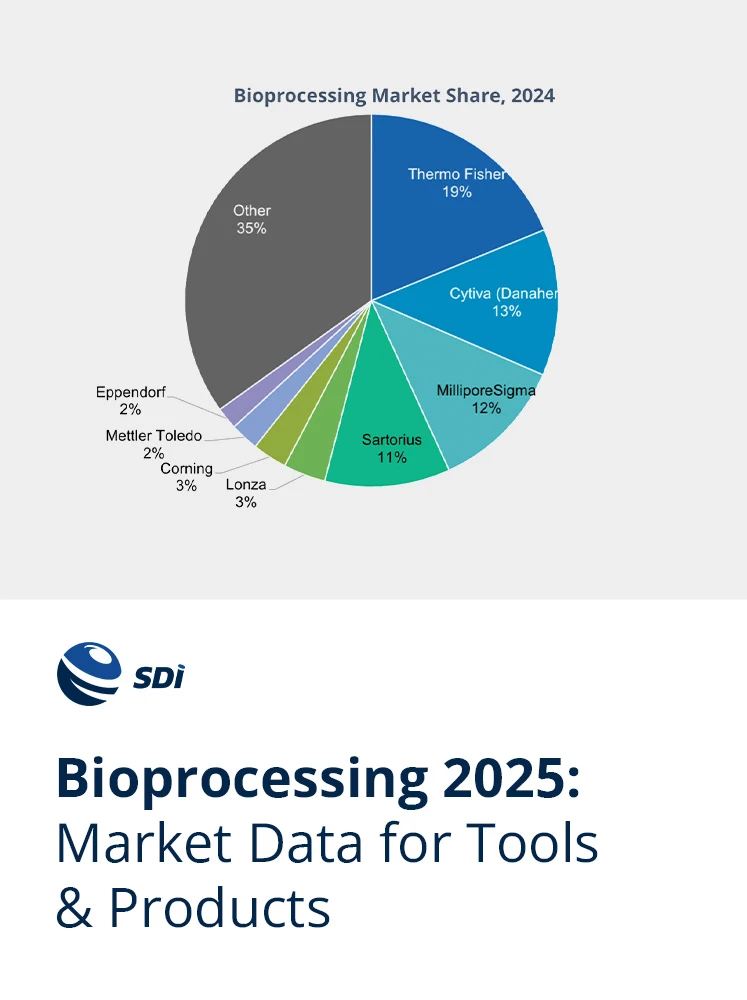The bioprocessing market is experiencing unprecedented growth as biologics, advanced therapies, and personalized medicine reshape biopharmaceutical production. SDi’s Bioprocessing 2025: Market Data for Tools & Products delivers strategic market intelligence across six critical product categories including: Media & Supplements, Process Chromatography, Filtration Systems, Laboratory Equipment, Single-Use Bioreactors, and Conventional Bioreactors. This comprehensive analysis provides 2024 market sizing with five-year demand forecasts through 2029, regional segmentation across eight global markets, and vendor share distribution for leading suppliers. Whether you’re planning market entry strategies, evaluating acquisition targets, or optimizing product portfolios, this report provides the competitive intelligence essential for confident decision-making in the rapidly advancing bioprocessing sector.