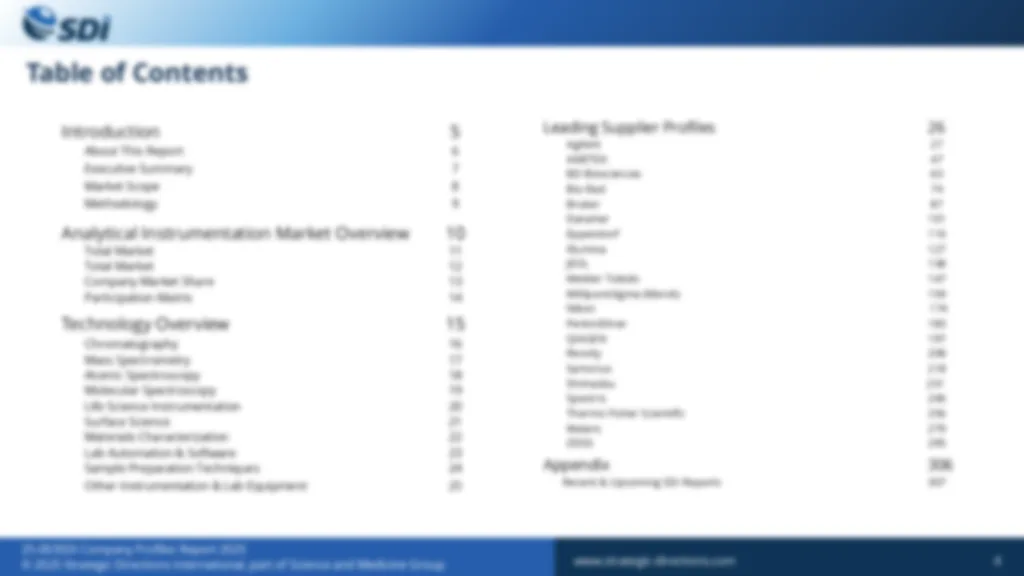 In Company Market Shares 2025, we explore the instrumentation market through the lens of the supplier rather than our usual technology-by-technology presentation. The report provides a brief competitive profile of 21 of the top suppliers in this market. The information that is presented includes: